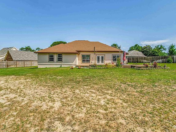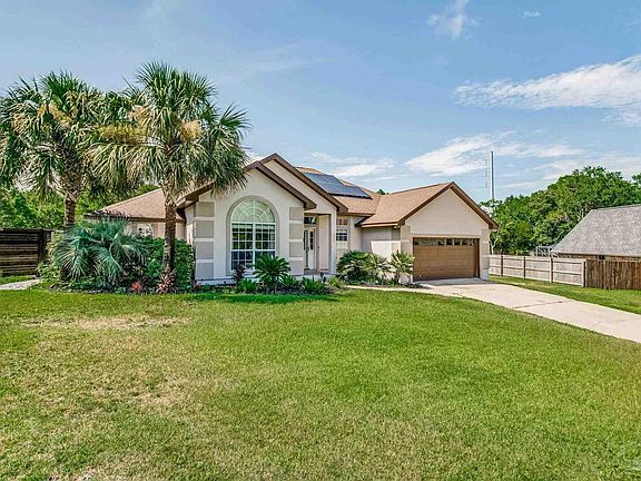Nestled in a peaceful cul-de-sac, this stunning 4-bedroom, 2.5-bathroom home offers the perfect blend of comfort, style, and functionality. As you step inside, you'll be greeted by an inviting open floor plan that seamlessly connects the living, dining, and kitchen areas, creating an ideal space for both everyday living and entertaining. The well-appointed kitchen is complete with granite countertops, updated black stainless appliances, wood look tile flooring, large corner pantry, and tons of cabinets for storage. The master suite is a true oasis, featuring a jetted tub, separate shower, double vanities, and a private water closet. In addition to the 4 bedrooms, there is a dedicated office space, perfect for remote work or as a quiet retreat. Outside, the oversized backyard is perfect for entertaining or relaxing with its large open deck and patio. Plenty of room for a future pool. Located in a golf course community with golf cart friendly streets. This family friendly neighborhood is close to the beach, NAS Pensacola, and downtown Pensacola. Call today for your personal tour! New Roof and A/C installed in 2020.