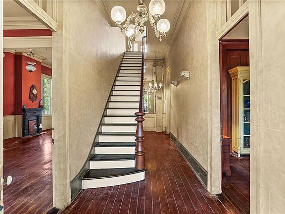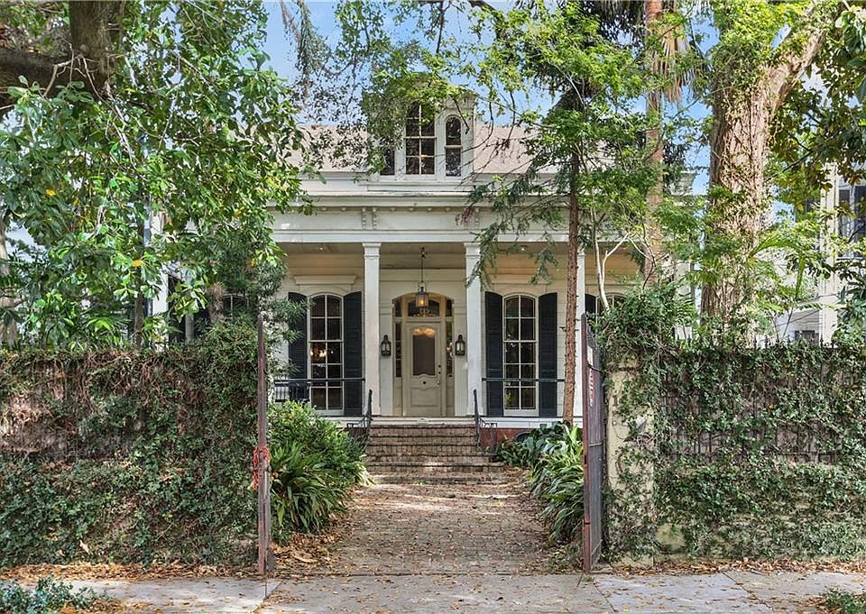 This quintessential Louisiana Center Hall is a time capsule with some of the most beautiful antique light fixtures and architectural elements you’ll ever see. Built in 1857, this home has spacious double parlors —one is a mahogany paneled library—moody and reminiscent of old times, a grand dining room, a dreamy country kitchen and 5 bedrooms and 4.5 baths. There are seven fireplaces, 14 foot ceilings downstairs, and original plaster ceiling medallions throughout. Three of the bedrooms, including one downstairs, have en-suite baths. There is a dormer vestibule that would serve as a beautiful office or nursery, overlooking the lush front yard. The home has a spacious front porch surrounded by a peaceful front yard with off-street parking. It also has a small back yard off the kitchen perfect for a plunge pool. The kitchen and two of the bedrooms have side galleries. Located on one of the prettiest streets in the Lower Garden District, close to restaurants, shops, bars, and the streetcar, just slightly over a block to St. Charles Avenue. Living doesn’t get any better than this. This home needs work, but it will be someone’s passion project. New roof. The home is being sold “as is.” Inspections are for informational purposes only.
