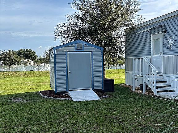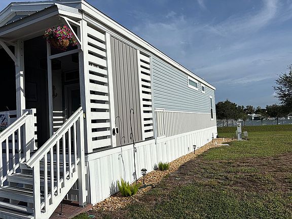 Beautiful park model at Sunkissed RV Park. 55 plus gated park with pool, fitness, pickleball and winter activities. House includes 8 X 8 shed for extra storage. Nice screened porch with tv, fireplace and fans. Close to restaurants, medical offices and the villages. Call for showing.