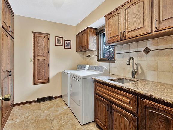 First time on the market in 25 years! This beautifully maintained 5-bedroom, 4-bath home sits on a large corner lot in a quiet cul-de-sac and offers over 5,200 sq ft of upgraded living space in the desirable Andover School District with lower Sedgwick County taxes. Extensively remodeled from 2016–2019 with solid oak hardwood floors in the entry, living, formal dining, and main floor family room. The kitchen was completely renovated in 2016 and features custom cabinets, Thermador gas/electric range with commercial hood, Thermador dishwasher, and a microwave that doubles as a second oven. Tile flooring in kitchen and all bathrooms. All four bathrooms, including the primary suite, were remodeled in 2017. Large bedrooms throughout with walk-in closets. The laundry room was upgraded in 2018. The basement includes a spacious pool table area, family room with fitness space, one large bedroom, and abundant storage. Energy-efficient updates include high-efficiency windows and doors, a Trane HVAC system with electric steam humidifier, two new 40-gallon water heaters (2025), and a new sump pump + battery backup (2025). Roof replaced in 2024 with assumable warranty. New exterior painting (2024) with 20-year paint. New concrete driveway sections (2025). Outdoor living features a large in-ground pool with newer equipment (2023–2024), and a custom-built pavilion (2017) with surround sound, cable TV, overhead infrared heaters, variable speed fan, and lighting. Extensive landscaping, outdoor lighting, and a 9-zone irrigation system using well water. Oversized 2-car garage with separate golf cart space, epoxy floors, cabinets, shelving, and wall storage. This home has been lovingly cared for and is move-in ready, offering years of low-maintenance, high-comfort living and entertaining on one of the best lots in the neighborhood.