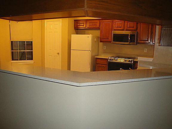 Well cared for one story in highly desirable Bay Glen. Kitchen features solid surface countertops, drop sink, electric stove, microwave and provided refrigerator. Washer and dryer also included. Oversize master bedroom with abundance of natural light thru windows. Master bath double shower has been remodeled. Relax in the lush backyard with recent wood decking and built in seating.