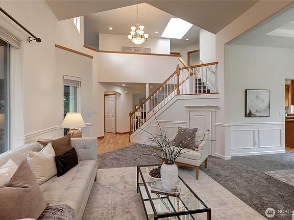 Discover an exceptional opportunity with a new, enticing price on this stunning Lake Stickney home. From the grand foyer to the soaring vaulted ceilings in the living room and the elegant tray ceiling in the dining room, this residence captivates. The upper floor features four spacious bedrooms, including a luxurious ensuite 5-piece bath and walk-in closet, along with a second full bathroom. The main level offers a cozy den/office, a ¾ bath, and a sprawling family room with a gas fireplace, seamlessly connected to a beautifully designed eat-in kitchen. Experience modern comforts like A/C, a 3-car garage, and a covered patio on a large, level lot, all nestled in a serene private driveway, just moments from I-5/405, light rail, and schools.