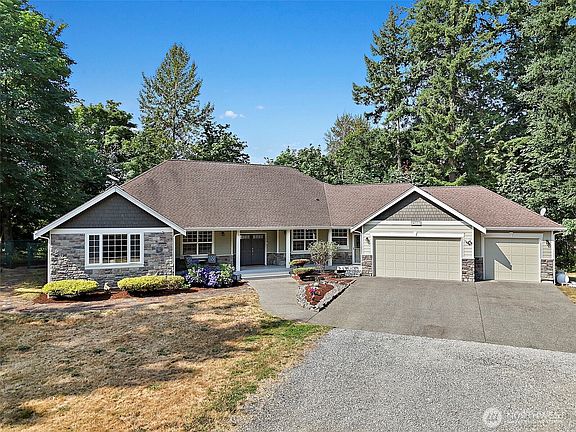 Discover luxury living w/an exceptional blend of comfort and natural beauty in this beautiful rambler nestled on over 4 acres, offering trail access to Lake Kathleen. The open floor plan w/vaulted ceilings and abundant natural light showcases stunning hardwood floors. The spacious kitchen features stainless-steel appliances, gas cooktop, and a huge pantry. Retreat to the primary bedroom w/French doors opening to a private deck and hot tub. Beyond the main living spaces, discover beautifully landscaped grounds. Other features: AC, EV Charger, fire sprinklers, 3-car garage, ample RV space, fenced backyard w/playset, and a professional-grade dog bath. Located in the Issaquah School District, it offers privacy, convenience, and NO HOA.
