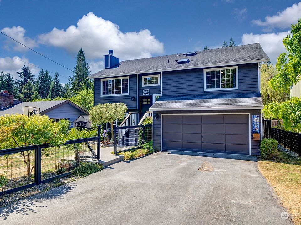 Entertainer's paradise! Charming split level home w/fresh paint inside & out. Cozy living room w/wood burning fireplace & lots of natural light. Bathrooms feature a skylight & modern tiling. Fresh carpet throughout. Kitchen offers modern cabinetry, a central island w/storage, & stainless steel appliances. Lower level space is perfect for a den/home office/game room. Garage features a light bar, ideal for illuminating a work area. Enjoy the beautifully landscaped front yard w/wooden fire pit & fenced yard. The backyard includes a deck perfect for morning coffee & an open patio ready for your personal touch. Just blocks from grocery stores, eateries, Jackson Trail Park, & outdoor recreation spots. Convenient access to I-5, Hwy 99 & 522.