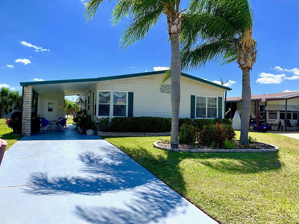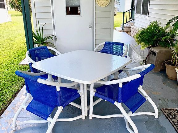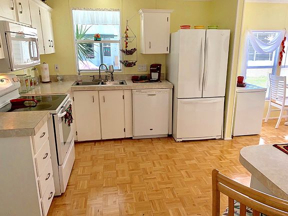 This is a turnkey home with cathedral ceilings, living room, two bedrooms, two baths, kitchen with parquet wood floors, breakfast bar, breakfast nook, new LG washer and dryer, and new refrigerator. Stay cool and problem free with a 2-year-new AC system, 2-year-new water heater, newer ductwork and newer piping under the home. The 9x18 enclosed porch just off the kitchen can be used for extra living space and/or storage. The shed is at the rear of the carport and is great for storing yard tools, bicycles, and other odds and ends. Lot rent is $617/mo and includes use of park amenities, free golf, lawn care, and trash and recycling removal.