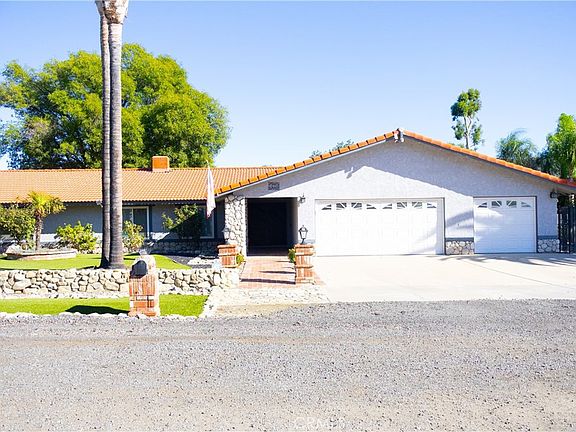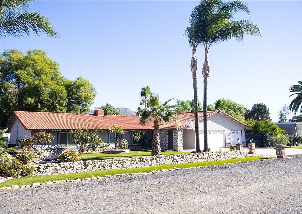 This property reflects craftsmanship and thoughtful details. This stunning RANCH STYLE property sits on an expansive lot 1 acre plus, offering privacy, spacious, and modern comfort. As you enter into the front FRENCH DOOR, you are graced w/bright open living-room a cozy inviting wood burning fireplace and large dual-pane picture window bring in natural lightening. The open hallway leads to 3 nice spacious size bedrooms, as the primary bedroom has a walk-in closet. As you step into the family room, with a comfortable fireplace, for those restful, easy movie days/nights. Adjacent from the family room is your kitchen and dining area. Kitchen boasts a BAY WINDOW, stainless steel appliances and quartz countertops. Step outside to a large covered patio and seating area provide a great space for barbecues, entertaining, gatherings, both large and small, or simply unwinding while taking in the views. Your backyard paradise complete with a sparkling pool, and Koi Pond. Property provides efficient energy solar panels. Property offers endless possibilities, gardens, plenty of fruit trees, horse facilities, additional recreation. With RV parking, and sewer clean out, property has a blend of COUNTRY LIVING and MODERN CONVENIENCE. COME SEE IT! COME LOVE IT! COME BUY IT!