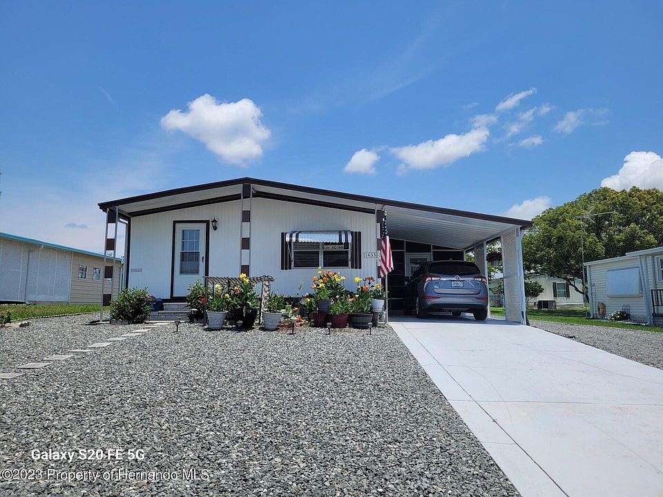 The Buyers financing fell through! Thier loss is your gain! This 2 Bedroom, 2 Bathroom is Beautiful, Bright & Clean. and located in the desirable 55+ Brookridge Community where you own land and have plenty of amenities and activities. This home offers gorgeous laminate floors, and a generous amount of new kitchen cabinets along with a breakfast counter/bar area in the dining room. There is also a Bonus area with a kitchen sink and cabinets that you can utilize as additional living space, an entertainment area, or Golf Cart parking. Enjoy the enclosed Florida room AND the private fenced in courtyard in back.