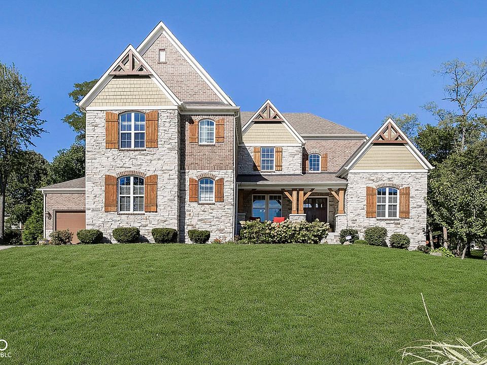 Extremely rare find of a true 6 bedroom 5 1/2-bathroom home in exclusive Canal Place nestled at an end of cul de sac featuring main floor primary suite with 100k of 2025 upgrades including breath taking new floors throughout main level. Enter into two story foyer with custom trim wall on 22 ft ceiling and formal dining rm space. Enjoy gorgeous 2 story great room perfect for entertaining & flooded with light. Impressive kitchen with space for gathering and cooking with awesome wood island, custom ceiling treatments, and walk-in pantry newly renovated for family function with custom organizers. The butler's pantry right off the chef's kitchen adds a touch of class and makes a great coffee bar. Outside offers a vaulted screened-in porch with its cozy fireplace or head to the expansive outdoor living area. The built-in grill, large tucked away basketball court, and a gas firepit ready for many outdoor memories to be made. Irrigation system keeps it beautiful all summer. Plenty of space if you want to add a hot tub or pool-electric is already there for your hot tub and pool plans can be provided. Main level primary suite has large bathroom with step in deluxe shower with built in seat. Huge walk in closet with custom built in organizers. Upstairs features 4 spacious bedrooms and a large loft area-perfect for extra hangout space or turning into a playroom. There is also a second laundry room for great convenience! The basement is like your own private entertainment zone, complete with wet bar, movie theater setup, and a pool table included. Basement also boasts 6th bed and full bath. Storage won't be a problem either. Huge mudroom off family foyer including laundry room and coat closet connected to the rare true 4-car garage and extra pad for plenty of parking. Golf cart friendly community, so enjoy a walk or ride to brand new popular Geist Waterpark with beach access, Geist Elementary School, nearby parks or restaurants like Fox Gardin Family.