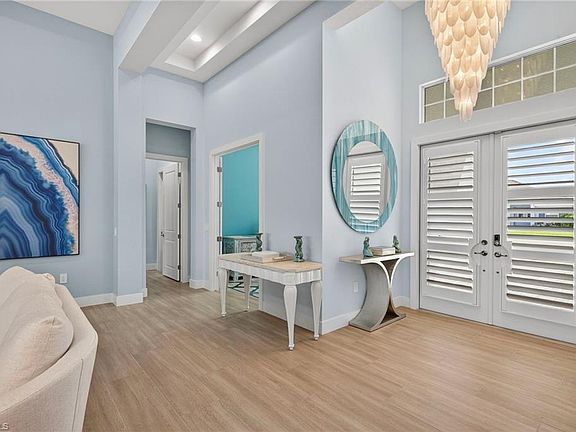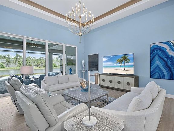 Welcome to Crane Point at Naples Reserve! One of Naples’ most popular communities where luxury and laid-back living meets vacation-style amenities. This custom Stock Development "Madison" model captures the best of Florida living with peaceful lake and private preserve views on "rowing Lane". Designed for both family comfort and versatility, this 2971 sqft-4-bedroom plus den, 4.5-bath home, offers a spacious retreat for everyone. From the moment you step inside the foyer, you will notice statement designer lighting, dramatic 16-foot ceilings with custom wood tray accents and expansive glass sliders with a bee-line to SPECTACULAR VIEWS. Wood-look tile dresses the main living areas while a coastal palate of blues accent the walls. The dining area is nestled in a perfect location for bird watching and tranquil views of the lake. The gourmet kitchen stands as the heart of the home with quartz countertops, top-tier appliances with a gas range, a wine cooler, and generous cabinetry for effortless storage. Each guest suite features its own ensuite full bath- offering privacy for friends and family. The primary suite features his/hers custom walk-in closets and a spa-style bath in the master bathroom featuring a freestanding tub and glass-enclosed shower with two separate vanities. Step outside to an expansive lanai with a full outdoor kitchen/BBQ, dining setup and multiple lounging spaces with a panoramic screen that perfectly frames some of Naples Reserves most sought-after views. Unwind in your very own lakeside custom pool & spa after a day of fun. A full outdoor bath with access into the main house allows for convenience and practicality. Other great features include plantation shutters throughout, a 500-gallon propane tank, impact-resistant windows and doors, a whole-house water purification system, Vitex Smart Home technology, storm smart electric shades to protect all exterior furnishings, a spacious laundry-room with upper/lower cabinetry & laundry tub, an air-conditioned three-car epoxied garage with Wi-Fi control and more. Naples Reserve also permits private boat slips behind certain homes—an uncommon luxury that brings lake life right to your backyard. Residents enjoy resort-style amenities including a lakefront pool and lap-pool, fitness center, tennis and pickleball courts, bocce, two dog parks, walking and biking trails, and 22 lakes for kayaking and paddleboarding. Exciting updates are on the horizon with the community’s new restaurant, tiki bar, and clubhouse renovation, set to debut in March 2026, promising an even more vibrant and social coastal lifestyle to this already fantastic community!! Just minutes to the Fiddlers Creek Plazas' Publix and several shops, 20 minutes to Marco Island and 20 minutes to downtown Naples restaurants and white-sand beaches!