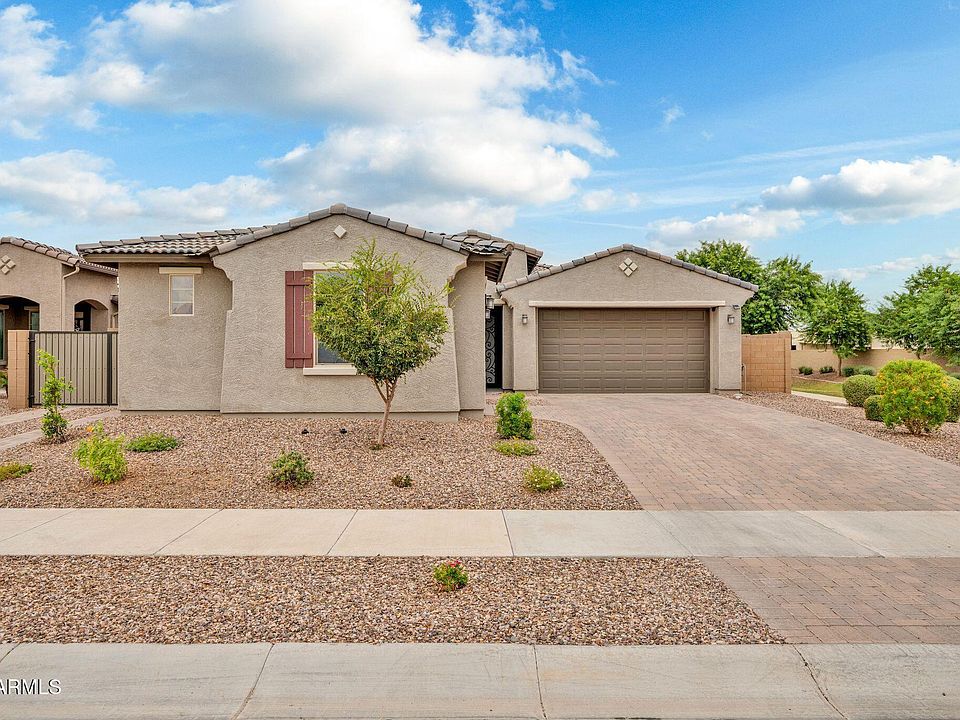 Wow—add this one to your list! In an exclusive community, this nearly 2,400 sq ft stunner with a 3-car garage shines on a charming corner homesite. Sophisticated elevation, rich palette, and an elegant entry porch deliver instant ''you've arrived'' vibes. Inside, the open plan is built for living/entertaining: oversized island, flex room for formal dining, and an upgraded gourmet kitchen with gas cooktop, commercial hood, double ovens, bronze accents, and a statement backsplash. Bonus cabinetry = serious storage. Retreat to a resort-style suite with HUGE super shower, executive-height dual vanity, and a dream walk-in closet. The backyard steals the show—fully landscaped with expansive pavers, low-maintenance turf, and a pergola for shaded lounging.