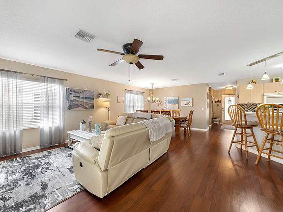 Live the Country Club Lifestyle without the highcost that includes FREE GOLF! Why wait to build when this tastefully updated home is ready for the most prudent buyers! Upon entrance, you are warmly greeted by wood floors, fresh paint inside and out. A bright and open floor plan seamlessly connecting the kitchen to the living/dining area and leading to the inviting, sunny enclosed Florida Room with charming lake views. Split floor plan perfect for guests. New HVAC, water heater, dishwasher and refrigerator make this home complete! This is a must see!