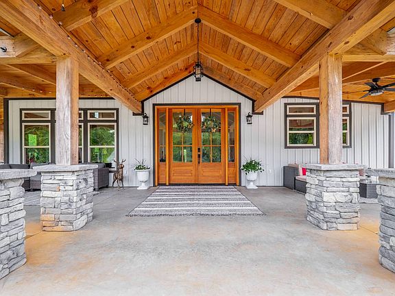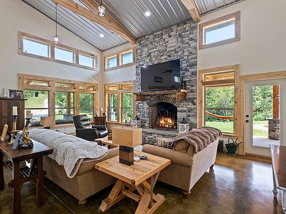 This 160-acre property near Roanoke combines a spacious 3-bedroom 2.5-bath custom-built home with recreational land that supports a variety of uses, including hunting, outdoor recreation, and long-term land ownership. Located down a private gravel driveway, the newly constructed home offers approximately 3,800 square feet of heated and cooled space, including the garage. The home is designed for both everyday living and accommodating guests. Inside, the living room and kitchen flow together in an open layout, highlighted by vaulted ceilings and abundant natural light from large windows. A wood-burning fireplace serves as a central feature in the living room, providing a warm gathering space during colder months. The kitchen is outfitted with custom cabinetry, granite countertops, commercial-grade appliances, and a large pantry. The primary suite includes a custom-tiled shower, spacious walk-in closets, and a comfortable layout. Two additional bedrooms are positioned for privacy, making them well-suited for visitors. Additional rooms include a private office and a large laundry room with a utility sink. The property offers outdoor living space with a gravel fire pit area and Adirondack seating, along with space adjacent to the home identified as a potential pond site. Beyond the home, the land features rolling terrain with a well-established trail system that provides access throughout the acreage. Three food plots with shooting houses are positioned on the property, supporting deer and turkey hunting opportunities. The majority of the perimeter of the property has been cleared and prepared for a high fence, which would allow a future owner to establish a managed hunting preserve if desired. This property provides the combination of a newly built home, versatile acreage, and recreational land features in a single tract, making it a strong option for buyers looking for a balance between residential use and outdoor pursuits.