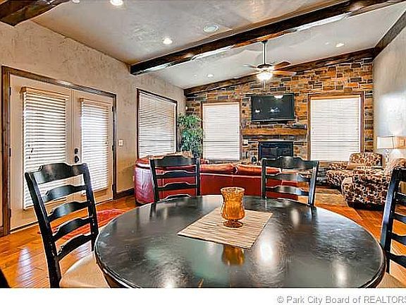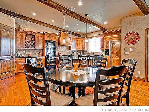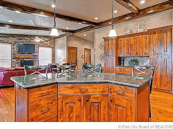 Gorgeous former model home with a huge gourmet kitchen, large great room, double master suites, guest bedroom, bunk room and a fully furnished cozy media room. This 3 level home has a top-of-the-line ADA Approved elevator. There are two oversized covered decks as well as a walkout patio with hot tub adjoining open space. It also features great views of both the Jordanelle Reservoir & Deer Valley Ski Resort. The location of this home is within a 3 minute drive of the Jordanelle Gondola at Deer Valley Resort and the marina on the nearby Jordanelle Reservoir, not to mention only 10 minutes from historic Main Street in Park City