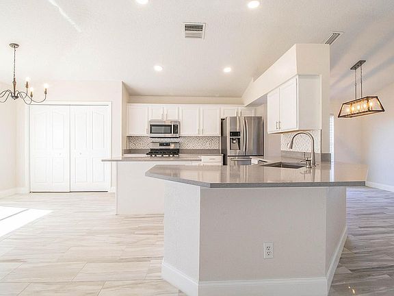 Newly remodeled, approximately 1900 sq feet 4 bedroom 2 bathroom 2 car garage home located in the Providence Lakes community in the heart of Brandon, Florida. The community boasts good schools short drives to the mall and MacDill AFB and a picturesque/well designed landscape. Walking distance to elementary school. Porcelain tile flooring throughout. Quartz countertops in kitchen and bathrooms. White kitchen with a gas range, large center island, and stainless steel refrigerator, microwave, and dishwasher. Separate dining room and eat in kitchen. Double vanity, garden tub, and separate shower in master bathroom. Screened lanai, oversized corner lot with a very large fenced backyard and no backyard neighbors. Automatic garage door opener. Includes washer and dryer in separate laundry room. Lawn care included! $2,995 per month. Owner pays for trash collection. Renter pays for utilities