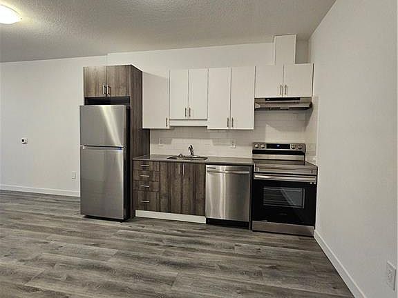 Floor-to-ceiling windowsLuxury finishesLarge floor-to-ceiling windowsCarpet-free floorsModern two-tone cabinetryQuartz countertopsStainless steel appliances