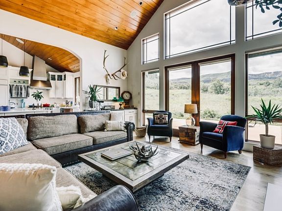 Live the Colorado dream on 15+ acres, unencumbered mountain views and just seven minutes to Willits/Whole Foods and 35 minutes to Aspen. This beautiful three bedroom/two bathroom home boasts a modern mountain flare with plenty of room for family gatherings and entertaining. Special features include a newly remodeled kitchen with marble countertops and Thermador/Viking appliances, cathedral ceilings, solid wood flooring, three fireplaces, jetted spa tub and steam shower in the primary bathroom and central a/c. The large back patio includes a dining table, wood burning fire pit surrounded by chairs and a large hot-tub. In the winter, watch the horses on the pasture just beyond the backyard. In front of the home is a picturesque pond surrounded by river rocks, and in the winter, the frozen pond can be used for ice skating. Miles of hiking, cross country skiing and horseback riding trials are just out your front door. The oversized two-car garage + carport provides protected parking for three vehicles, with plenty of extra parking in the large driveway area. Stay for a week or a year, you will love the quiet country living, while being just minutes to all the Roaring Fork Valley has to offer. $12,500/month + utilities long-term or $20,000/month short-term.