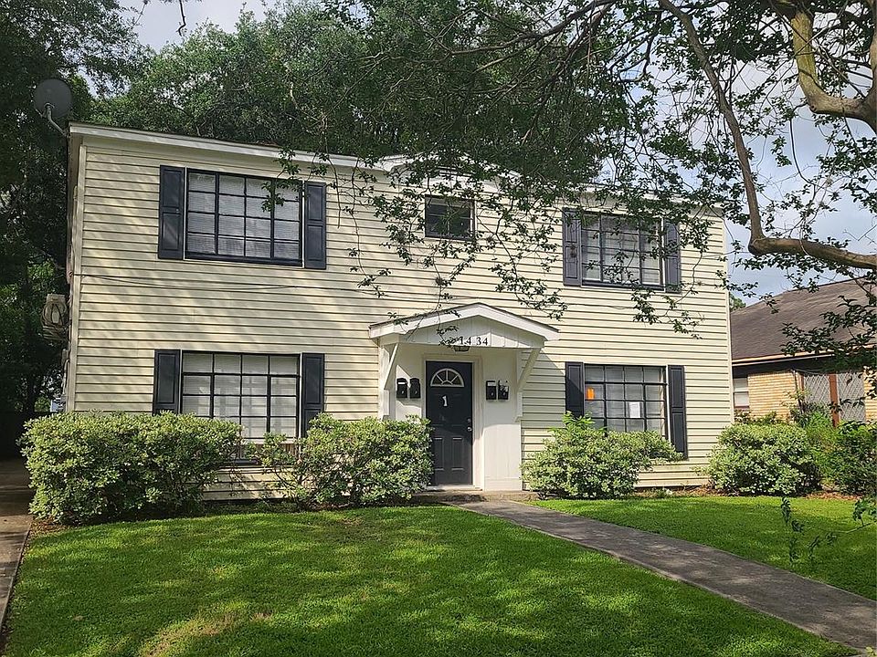 Ready for peace and quiet? If so, you'll love this place and sitting outside on your balcony under some of Houston's finest Live Oaks! Light and airy one-bedroom/one-bath upstairs apartment in the quaint Eastwood neighborhood (part of Greater East End). Beautifully-refinished original hardwoods. Living room is spacious and dons a brand-new A/C split unit. Bedroom has window unit plus a ceiling fan. Vintage tile in bathroom. Gallery kitchen with gas range for maximum cooking enjoyment. Shaded off-street parking and balcony in back. Washer/Dryer onsite. Ideal for someone wanting a quiet Montrose-like place at East End prices. Located less than half a mile to U of H and minutes from Downtown, Midtown, Montrose, and the Texas Med Center. Owner pays water, sewer, and lawn care. NO SMOKING. NO DOGS. Cat okay with pet deposit.