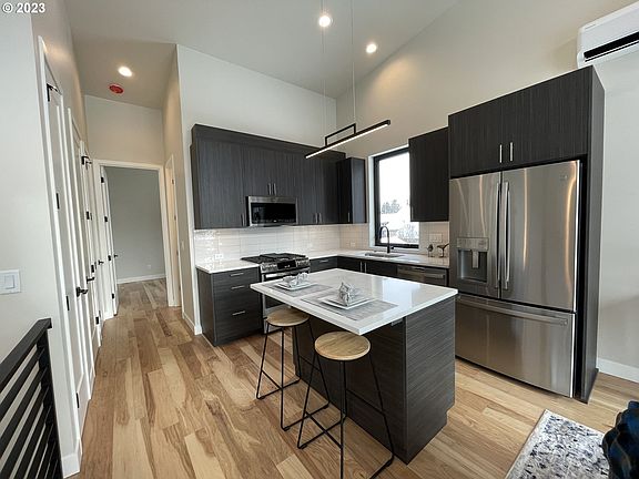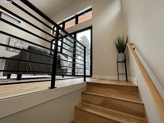 Discover hip modern living in this 1200 sqft home & ADU in NW Bend. High vaulted ceilings & abundant windows create a bright & airy living space. Main home floor plan has 2 bedrooms, one on each floor. Access outdoor living through panoramic door system. Studio ADU has full bath, kitchen, eating bar & patio. Home prewired for electric car charger, mini splits & low voltage panel w/prewiring for speakers. Listing agent related to Seller.