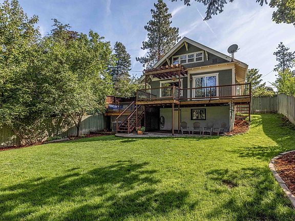 South Hill charmer nestled on a private and treed lined road close to all the amenities. Plenty of room to spread out in your 5 bedroom (2 primary bedrooms) & 2.5 bathroom home with a bonus room/den. Beautiful custom kitchen that opens up to the large deck that's perfect for entertaining! Hard surface countertops, stainless appliances, two kitchen islands, built-in wine rack, kitchen eating bar, formal dinning room with built-in buffet and bay window. 2 fireplaces (gas & wood), gas forced air, AC/heat pump, daylight basement with tall ceilings that go out to the patio area, main floor primary bedroom, spacious bedrooms, original hardwoods, large covered front porch, private fenced backyard, sprinklers, pergola covered deck and so much more! Walk to Polly Judd Park, Rocket Bakery or indulge at Huckleberry's!