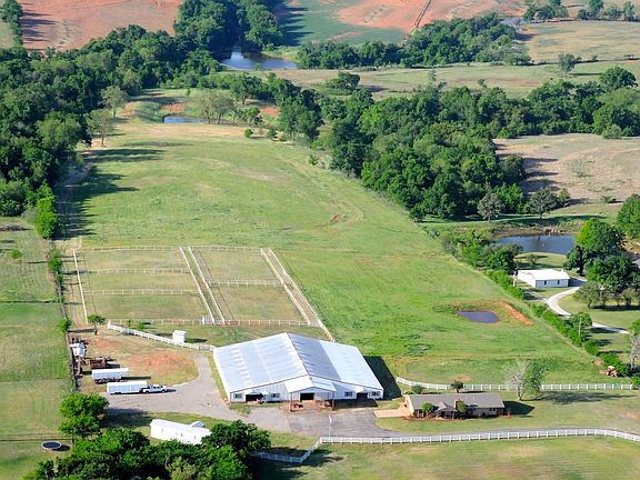 This unique 30+/- acre horse farm has a Morton barn with a 60' x 120' Indoor Arena , 36 12' x 12' stalls all leveled with screenings, overhead doors at each end, concrete alley, wash bay, tack room, office, and lab. The totally remodeled 1600 +/- SF, 3BR, 2.5BA Brick Home has granite kitchen counter tops, hardwood floors, a concrete deck, and a 2-Car Garage. 125 x 250 Roping or Riding Arena The mobile home on the property would make a great residence for a manager or trainer, guests, or could make a great office. Pipe & Cable Runs with Alley 2 Ponds The tract lends itself to construction of a training track or large arena. The high point of headquarters offers beautiful views to the South with a great visual of the site for track or arena. Located minutes from downtown Purcell, OK with easy on/off access to I-35 and less than an hour from Oklahoma City and Remington Park, this property lends itself to have excellent potential for commercial or business location