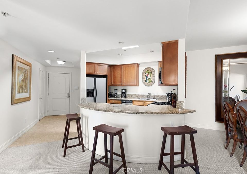 Welcome to this move-in ready, 3-bed, 2-bath top-floor condo located in desirable Sherman Oaks. Designed for modern living, the spacious open-concept floor plan features an updated kitchen outfitted with stainless steel appliances, a formal dining room and inviting living room with a sliding glass door that opens to a private balcony. The generously sized primary suite boasts a walk-in closet and ensuite bathroom, complete with a soaking tub, large shower and double vanity. The two additional bedrooms and full bathroom are thoughtfully situated on the opposite wing of the home, ensuring privacy and separation from the primary. Additional highlights include in-unit laundry, secure garage parking and access to a communal rooftop lounge. Ideally located within an excellent school district and nearby local shops, cafés and restaurants.