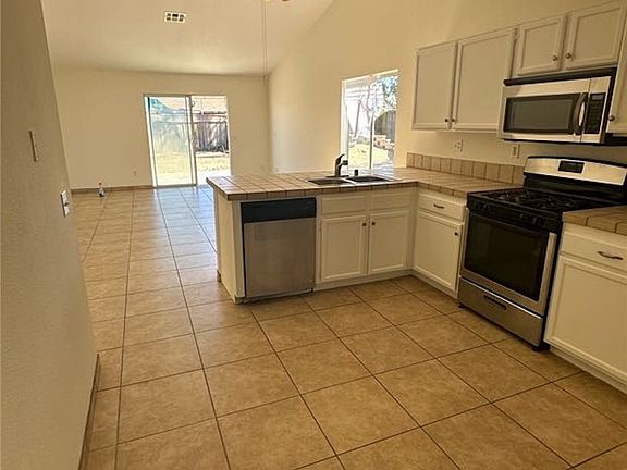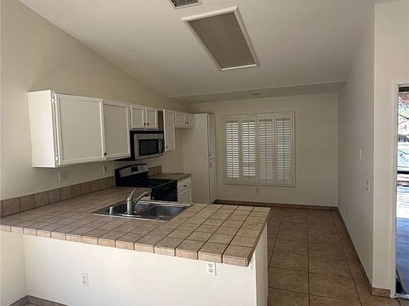 Welcome to this beautifully updated 3-bedroom, 2-bathroom home featuring a stylish blend of tile and wood-look vinyl flooring throughout. Located in a cozy cul-de-sac. The spacious living room offers high ceilings —perfect for relaxing evenings with family or guests. The updated kitchen boasts ample cabinet space, making it both functional and attractive. Both front and back yards feature low-maintenance desert landscaping, and Fresh pine tree adding to the home's curb appeal and easy upkeep. It also has an extended driveway you can park additional cars. Located in a quiet, family-friendly neighborhood, this home is perfect as a first-time buy or an investment opportunity. Don't miss out on this move-in-ready gem!