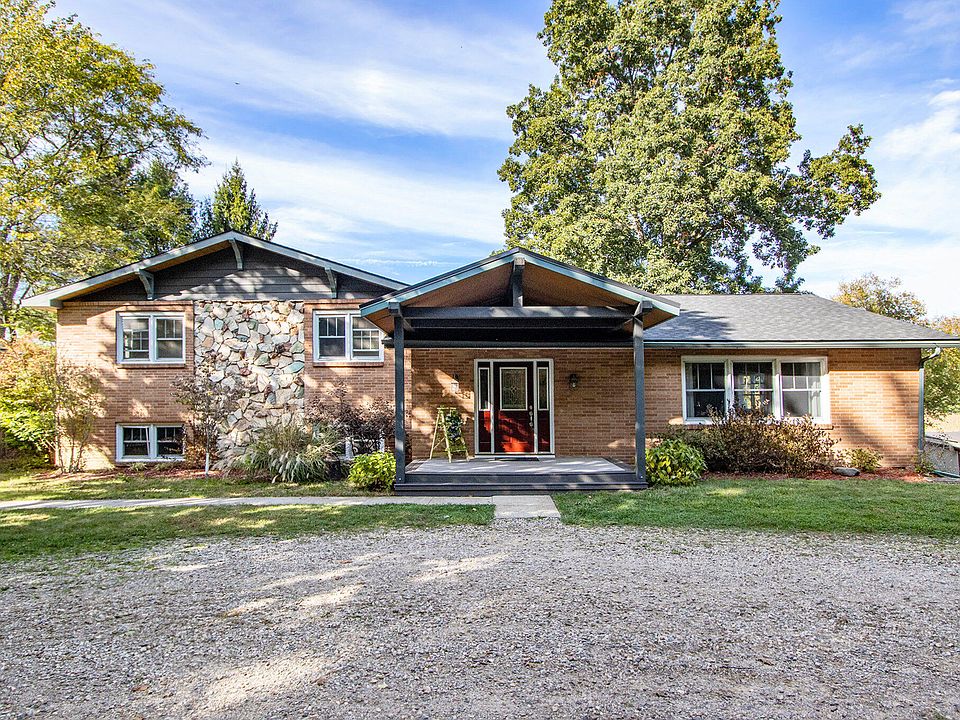 Glorious views overlooking well over10 acres of private countryside seclusion. Surrounded by quaint meadows, woodland and farmland, this location has become the regional choice location for estate class residential investment. Approaching nearly 3,000 square feet of living space, including very large and open spans of unbroken main floor kitchen, dining and living space. Lower levels lead to spacious family and secondary living quarters with striking concave steps that lead to a very large workshop/hobby/studio level with its windows & walk-out doors this space is flooded with ample natural light. 4 Bedrooms - 3.5 Bathrooms ready for your enjoyment. recent significant capital improvements include roofing and heating system replacement. Add a mighty bonus of the additional barn/auxiliary building and lovely concrete drive that services it, one truly feels the value of its price. Public open-house on Sunday,10/05 from 1pm to 3pm.
