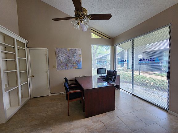 The property offers built-in storage, interior closets, and an exterior storage unit, along with reserved parking and ample guest parking. Located in a garden-style office complex with manicured lawns, mature trees, and a charming creek, tenants enjoy a peaceful and professional setting rarely found in Houston.