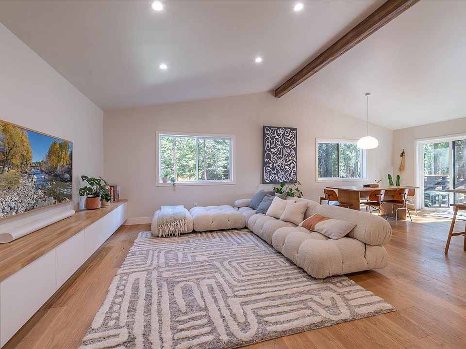 Modern Mountain Retreat in Tahoe Donner Thoughtfully remodeled from top to bottom, this modern Truckee retreat combines timeless mountain character with refined, high-end design. Every detail has been thoughtfully selected — from solid white oak doors and flooring to unlacquered brass hardware, custom cabinetry, and designer fixtures throughout. The light-filled living spaces feature smooth Level 5 walls, new windows, and a warm palette of natural materials. The chef’s kitchen is equipped with Fisher & Paykel appliances, Cal Faucets, and bespoke cabinetry, while the primary suite boasts a steam shower, heated floors, and luxury finishes. Behind the scenes, every major system has been upgraded: new HVAC with Nest and whole-house humidifier, new electrical panel and wiring, radon barrier, gabled attic fans, crawl space fan, and EV-charger-ready garage. The fully finished, heated garage with trap-door crawl access offers exceptional storage. Enjoy a freshly painted exterior, updated deck and covered walkway, and a quiet location on the desirable Northwoods corridor — walking/biking distance to Tahoe Donner Downhill Ski Resort and Alder Creek Adventure Center. A rare blend of modern craftsmanship and mountain ease — move-in ready, perfectly executed, and built to last.