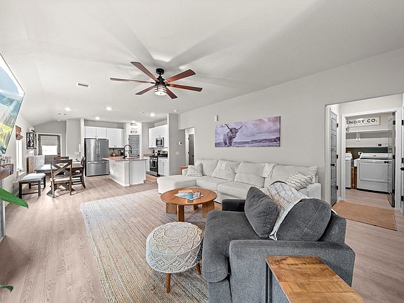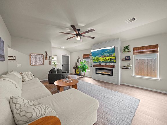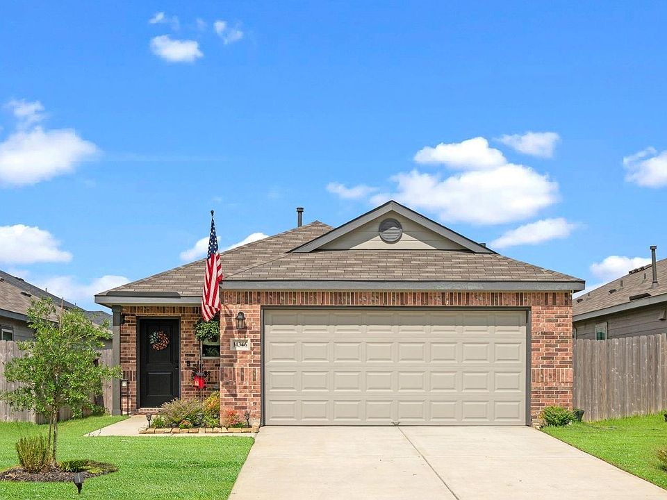BETTER THAN NEW! GORGEOUS 2024 BUILT 1 STORY WITH UPGRADES GALORE! Lovely Elevation with Covered Front Entry! Wonderful Open Concept Interior Layout! Impressive Entry with Custom Storage Bench Opens to Large Family Room with Wood-Look Flooring & Shiplap Accent Wall with Electric Fireplace! Gourmet Island Kitchen: Granite Counters, Stainless Steel Appliances (Including Gas Cooking & Built-In Microwave), Abundant 42" Cabinetry, & Corner Walk-In Pantry! Privately Located Master Suite - Lovely Bath with Large Shower + Built-In Shelving! Generously Sized Secondary Bedrooms - Both with Neutral Carpet & Paint! Pretty Guest Bath - Tub/Shower Combo! Convenient Indoor Utility Room with Built-In Shelving/Storage - Washer & Dryer Included! Freshly Painted Interior Doors, Stylish New Faucets & Cabinetry Hardware, & Motion Detector Lights! Covered Patio Overlooks Tranquil Backyard! Quaint Community with Easy Access to Hwy 105 + Loop 336! READY FOR MOVE-IN & ENJOYMENT!