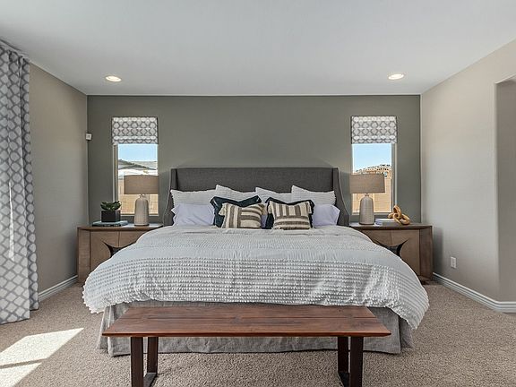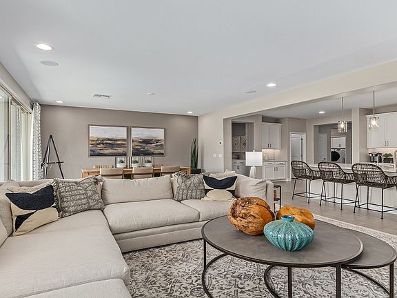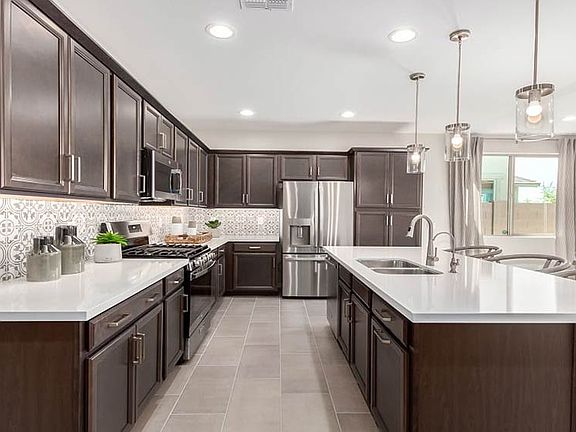Welcome to the 45RM2 at 14346 W Soft Wind Drive in Almeria at Rancho Mercado. This spacious and beautifully appointed new home is designed for comfort, connection, and everyday ease. The open-concept gourmet kitchen features elegant white cabinets, quartz countertops, a center island, and flows seamlessly into the great room and dining area, perfect for hosting or relaxing. Sliding glass doors lead to a covered patio, creating a lovely indoor-outdoor living experience. The serene primary suite is tucked at the back of the home and includes a spa-inspired bathroom with a large walk-in closet. At the front, two secondary bedrooms, a full bathroom, and a versatile flex space offer privacy and flexibility for guests, hobbies, or working from home. Almeria at Rancho Mercado is a thoughtfully connected master-planned community where nature and activity meet. Meandering trails link a playground, sports courts, and a dog park-perfect for morning strolls, friendly games, and time with furry companions. Here, every day feels like a breath of fresh air. Additional Highlights Include: Multi-slider door at great room, garage service door, and flex in place of bedroom. Photos are for representative purposes only. MLS#6903660