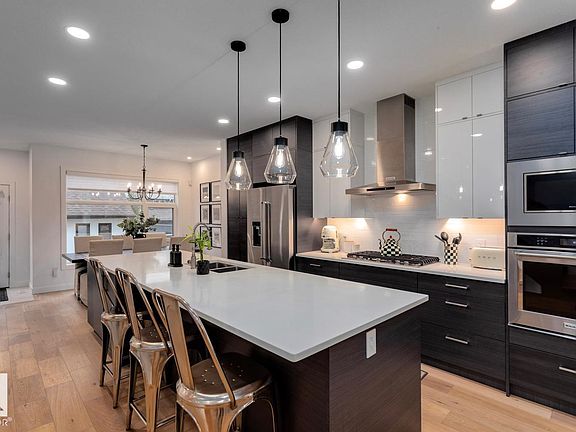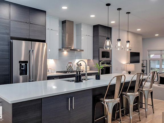 BETTER THAN NEW.....Welcome to the vibrant community of Parkview! Located on a quiet/treelined street, this beautiful infill home offers over 2500 sqft of living space and will surely impress! The bright and spacious main floor features 10' ceilings, gorgeous hardwood floors, lavish kitchen w/expansive island, quartz counters, premium cabinetry and s.s. appliances, open living area w/gas fireplace, and great dining space. Stunning open riser staircase lead you to the upper level where you will find the primary suite complete w/spa like 4-pc ensuite and walk-in closet, additional 2 bedrooms, 4-pc bath, and laundry room. Additional steps to the cozy loft area w/wet bar and access to the ROOFTOP PATIO! Fully finished lower level w/rec room, 4th bedroom, 4-pc bath and storage space. Outside you will find the fully landscaped/fenced yard, concrete patio, and double garage. Located close to great schools, minutes to downtown and the River Valley. Great opportunity in one of Edmonton's most popular areas!