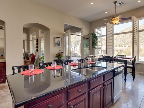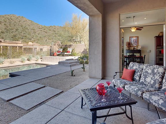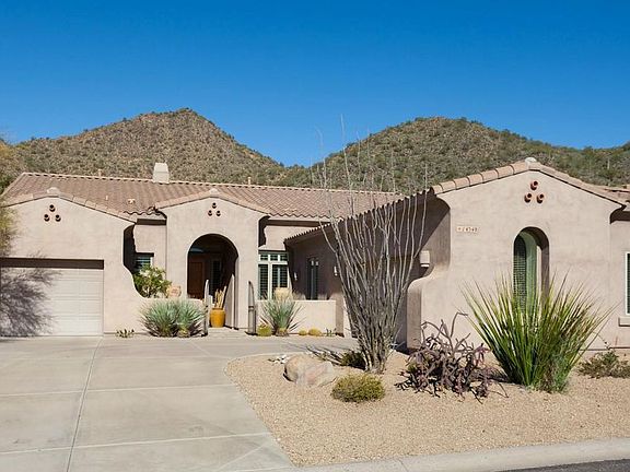Resort living inside & out! Rarely available Rosewood floorplan in upscale Hidden Hills community shows like a model. Perched on a premium elevated lot showcasing beautiful Mountain Views. Lightly lived in 2nd home is meticulously maintained and highly upgraded with Soaring 12 Ft. ceilings throughout, Travertine Flooring, Pella Windows, multiple French Doors, Chefs Kitchen w/rich 42'' Cabinetry, built-in GE Monogram Refrigerator, Slab Granite & SS appliances! Great Room, Master Suite & Kitchen showcase endless Windows & serene Mountain Views. This beautifully appointed home has been impeccably maintained & is move-in ready. Outstanding Scottsdale location near Mayo clinic, Top performing Public Schools, Basis Charter School Scottsdale & Hiking. Builder lot premium was $75,000!
