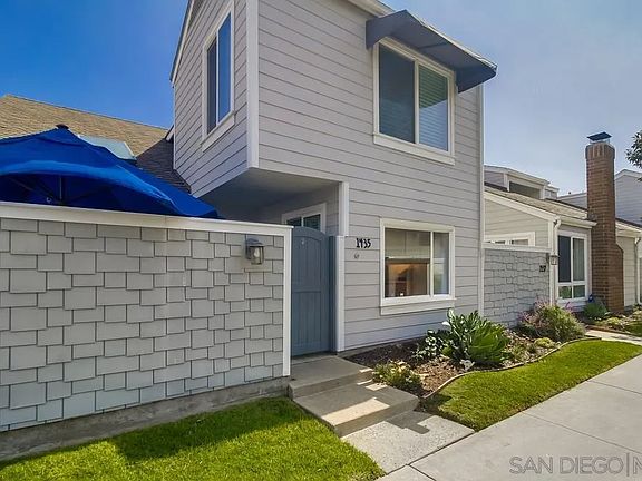 Designed for both comfort and style, this beautiful townhome features vaulted ceilings, large glass doors and a skylight that fills the living space with abundant natural light. Warm wood floors flow throughout, complementing the gorgeously custom kitchen with stone countertops, high-end appliances, and a wine fridge. The main floor bedroom showcases a striking wall map of Coronado Island and is adjacent to a renovated full bath. Upstairs, the spacious primary suite boasts vaulted ceilings and opens to a private deck with peekaboo water views and the San Diego skyline. The ensuite bathroom has been exquisitely remodeled to offer a spa-like retreat with steam shower and a large walk-in closet. Being sold furnished, including a 4-seat golf cart. Walk to the Ferry Landing, shopping, cafes and restaurants.