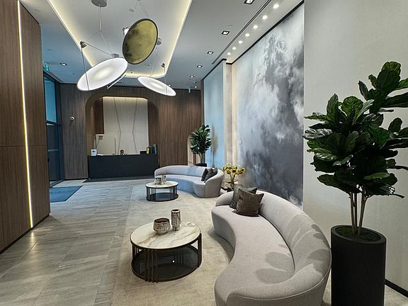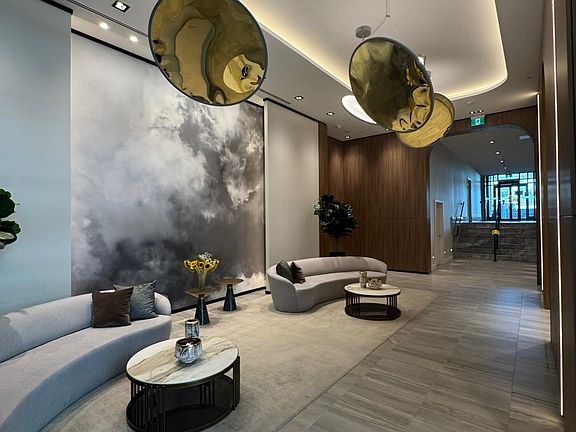 High-end furnishingsFloor-to-ceiling windowsDesigner kitchenQuartz countertopsStainless steel appliancesCustom cabinetrySpacious primary suite