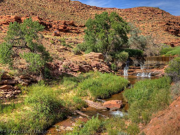 Moab Oasis... A clear, mountain-fed trout stream flowing through the redrock desert is a rare and precious gem. Located at the edge of Moab, this private oasis of more than eight pristine acres includes a manicured streamside paradise featuring terraces of natural waterfalls and pools, as perennial running water cascades 500 feet through the property. With stream frontage on both sides of the creek, the parcel hugs the water as it carves its riverine way through bedrock toward the Colorado River. Mature shade trees create a beautiful riparian forest of Cottonwoods and River Birches. The property is free of invasive tamarisk. The landscape is irrigated from a large developed spring, and has additional water and well rights. Moab City water is available for culinary use, as well. Majestic redrock cliffs rise from the stream bed, featuring Native American petroglyphs within the property. Exceptional hiking opportunities abound, on the public lands just moments away. This is a diverse and exquisite acreage; a lush, riparian corridor surrounded by rugged desert topography. It is perfectly suited as a single family estate site, with abundant open space surrounding and breathtaking views. The conveniences of Moab are moments away, yet the peace and quiet of this site will astound you. Truly, this is perhaps one of the finest pieces of private property in the County.