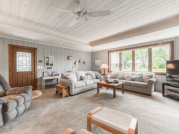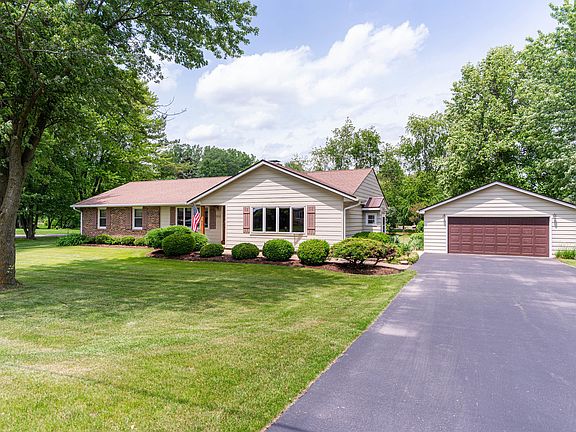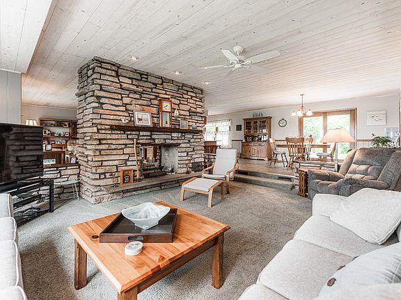 A little bit country, a lot of convenience! Extremely well maintained 3 bedroom 1.5 bath ranch style home located on beautifully landscaped .88 acre corner lot in unincorporated Sycamore. Walk into the sunken great room to the view of the beautiful double sided stone wood burning fireplace. Enjoy the lighting features accentuating the whitewashed pine ceiling! Walk in thru the front door to the same gorgeous view of the fireplace and sit down in the quiet of the living room. Enjoy the view of the back yard through the dining room patio doors, or sit on the stamped patio and enjoy a morning brew and the view of the tree line berm! The kitchen has been updated with craft maid cabinetry, quartz countertops, and stainless steel appliances. Need a main floor laundry? Just look around the corner and there it is! This homes basement has been enjoyed by many, for pool, ping pong, TV and other family gatherings and it could easily be finished to suit your needs. 200 amp service. Step outside to your 2.5 car garage that has flooring finished by Integrity Concrete Coatings of Sycamore. Easy interstate access, Peace Rd, Route 23, 5 minutes from downtown Sycamore, schools, clinics, shopping centers, restaurants, grocery stores and North Western Hospital. Set up a viewing today, don't miss the opportunity.