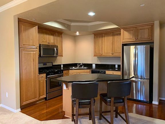 2 bed 1 bath corner unit condo in gated community. Kitchen w/granite counter top, stainless steel appliances, island kitchen. Fireplace in living room. Large bedroom with closet spaces. Large bathroom with walk in shower. Washer & Dyer included. 2 car tandem parking spaces. Courtyard with Fireplace and BBQ area. Owner pays water & trash. Tenant pays electric & gas.
