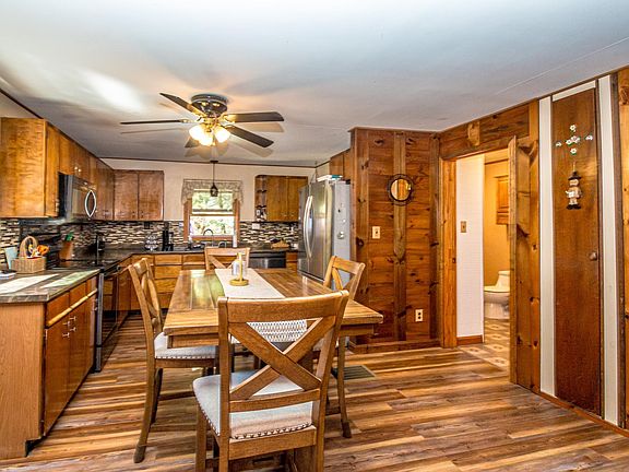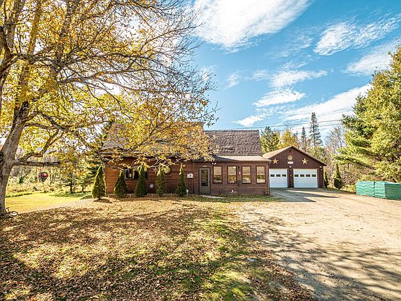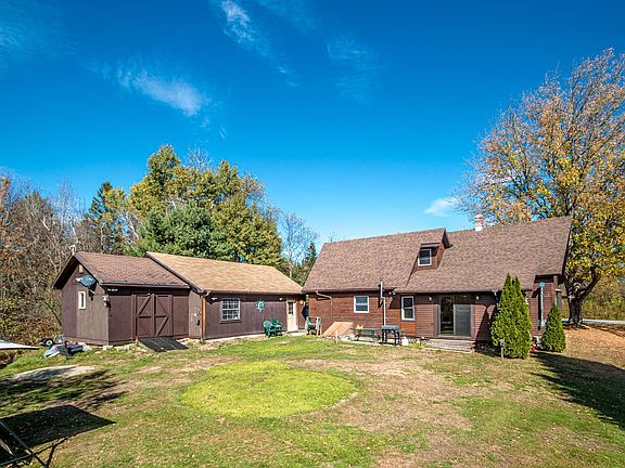 Situated on +/- 2.1 acres of land, this cape has so much to offer. Enter the front door and you're welcomed into the kitchen and dining space. You'll find tastefully done countertops and backsplash as well as newer appliances and plenty of cabinet space. From there you'll find a family room as well as a living room. Both offer ample space for seating and entertainment. An office with a built in desk connects the two rooms. The first floor also features a full bathroom with washer and dryer. The entire first floor has newer vinyl plank flooring that ties all the rooms together. There are also multiple pass through shelves and storage throughout. Upstairs there are two similarly sized bedrooms and a larger primary bedroom. A pellet stove can be found in the living room as well as in the basement. These serve as the primary heat source for the home. There is a forced hot air furnace for back up if needed. Outside there is a two-bay garage with storage up above. Behind the garage is an attached shed that is perfect for storing lawn equipment and accessories. The outdoor space does not disappoint. Whether you're looking for mountain views or a quiet space to relax, you'll find it here. There are mature apple trees and shaded seating areas. If you sit quietly enough, you may even get to see some wildlife traversing through the yard. Located just outside of town offering conveniences while being secluded enough to offer privacy, this home is a must see.