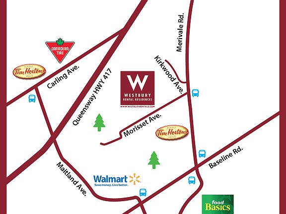 Walking distance to bus transit on Merivale Road
