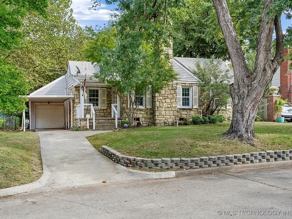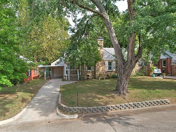 Welcome to 1435 S Marion Avenue, a classic 1938 stone home with 3 beds, 2 baths, 2 living spaces, lots of attic space, front porch, large back deck, 1 car garage and carport parking. Offering 1585 sqft (AP) of living space on a spacious 8100 sqft lot, this one story home WOOD FLOORS REFINISHED & NEW GRANITE COUNTERS in kitchen & 1 bath. Step inside to find a cozy living room with a fireplace, original details that showcase the home's era and a practical floor plan featuring 2 baths and 2nd living space off of kitchen and primary bedroom. The kitchen has some new appliances which flow easily into the dining room for everyday living and entertaining. Outside, enjoy a generous yard with mature trees, ideal for gardening, outdoor gatherings, or simply relaxing in your private retreat. The home also includes both an attached garage and carport, offering convenience and extra storage. Perfectly situated in a quiet neighborhood near Tulsa's vibrant midtown, this home is close to Fair Grounds, parks, schools, shopping and dining, making it an excellent choice for anyone looking for location, character and value. Newer siding, remodel, original hardwoods, new granite counters, new concrete driveway 2022. Inclusion : refrigerator, Exclusion: washer & dryer.