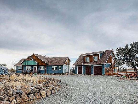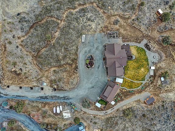 Incredible single level custom build on almost 5 acres! Panoramic mountain views, modern and beautiful ADU, lovely outdoor spaces and outbuildings all on an exquisite setting in Twin Lakes Ranch. Owners built themselves and you will see it in every detail. Open great room living with temp controlled pellet stove, cathedral ceilings, a wall of windows looking out to the mountains and 3 sets of french doors out to an enormous deck! The chef's kitchen features double ovens, farm sink, solid acacia counter, pantry, coffee nook and so many more designer touches you won't believe your eyes! Lofted primary suite with Juliet balcony, stunning views and sitting area. Wonderful separation between primary and guest rooms. Bathrooms have heated floors! Outside find the coolest treehouse, a craft/she-shed (full electric), addl. storage shed + a path around property, lower deck for pool, dog kennel, chicken coop, garden beds and more!! Please see attached features document, too many to list here!