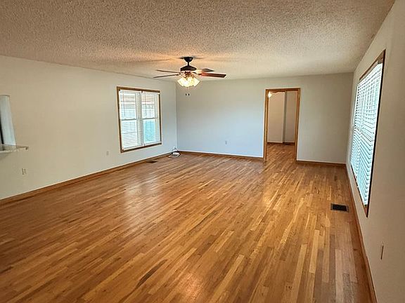 Metal fenceNew blindsNew paintLarge lotBeautiful hardwood flooringDining roomCovered patio