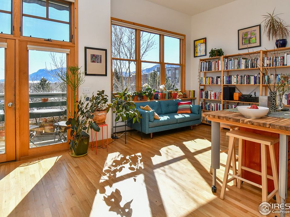 Coveted North Boulder Luxury Loft. VIEWS VIEWS , location, location! Light, bright open floor plan with gleaming white oak hardwood floors throughout. 16 ft ceilings and expansive windows afford unobstructed views of Flatirons. Renovated kitchen complete with stainless appliances and granite. Enjoy ease of living, CO lifestyle: trails, buses, dog park, dining, coffee shops.Well maintained common green/gazebo/community garden for outdoor entertaining. Secure entrance. A must see!