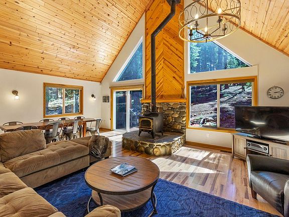Wonderful Chalet-style home backing to open space on a quiet street in Tahoe Donner. It features an open great room with dramatic vaulted ceilings and windows to take in the forested view. Excellent indoor/outdoor flow to the back deck and yard for year-round enjoyment. Updated kitchen, bathrooms, flooring and lighting throughout the home. Upstairs are 3 bedrooms and a loft area, all with vaulted ceilings. Additional features include airlock entry, a covered walkway and a spacious 2-car garage. Offered turnkey and ready to enjoy.