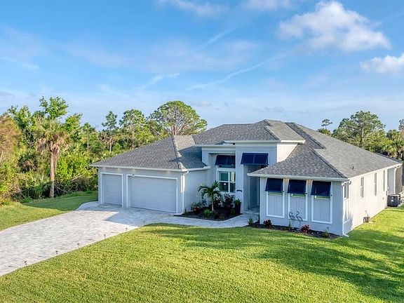 Stepping through the front door your eye is drawn to the beautiful, spacious interior, the pool right outside, and the water view beyond. Your first impression will be “Wow”, and the closer you look the more you will love it.This three-bedroom two-bath house has the open floor plan you want with the large kitchen, living area, and dining area combined as one. Slide the impact doors open and enjoy the large covered lanai for even more room. The owner’s suite is located on one side and the laundry room, garage, second bath and two bedrooms are on the other. The den is just to your left as you enter. This is a perfect place for someone who works from home or you could set up a cozy sitting area away from the main living area.This DM Dean home was completed in 2023 and is better than standard new construction in so many ways. If you purchase this home you will know the exact cost and it will be ready for you to move in the day you close. These are significant improvements over the new construction process. Beyond this, the list of upgrades is long and impressive. All are available in a list for you to review; many are obvious as you look through the house. The building is very energy efficient due to the spray foam insulation and impact windows. The flooring is upgraded plank look porcelain tile throughout. All shower entries are wide and with no barrier so it is easy for everyone. This house is equipped with a 500 gallon propane tank that is used for the whole house generator that will come on automatically when needed. The propane also feeds the fireplace, cook top, oven, and dryer. There custom closets, central vacuum, and upgraded appliances and cabinets speak to the overall quality of the home. This house is on a quiet street already and this property is a triple lot to ensure your privacy in the future. Audio/visual recording equipment may be in operation inside and outside the house.