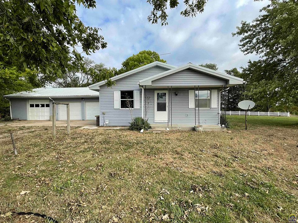 Welcome home to this 3 bedroom, 2 bath ranch in the heart of Jackson County. This home sits a short distance off of Hwy 75 for quick access to Topeka, or Holton. Approximately 3 acres, and has a metal roof for minimum maintenance, main floor laundry, new carpet, paint, and an oversized attached 3 car garage! There are two non-conforming rooms in the basement that could be used as storage, office or bedrooms. Mechanic Pit with Light in 3rd garage! Potential for additional acreage, 3 acres or so to the West. If Buyers would like to resurvey and include more acreage up to apx 3 acres with pond to West and/or driveway and machine shop building, Sellers are open to possibilities! VA/FHA are acceptable, with flexibility on how to handle/remove any building/s included. Hunting and/or fishing rights for adjacent land is negotiable. Pictures of deer are from owner's land across street!