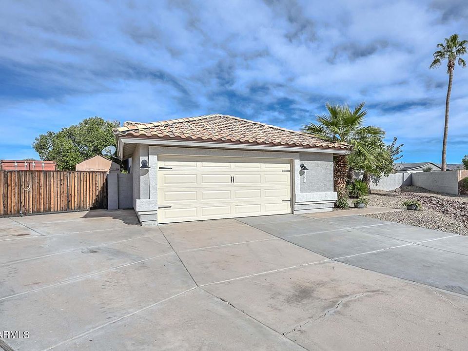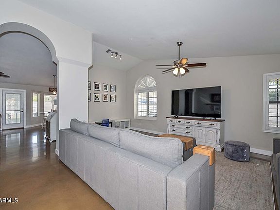 Stunning fully remodeled 4-bed, 2-bath Peoria pool home on huge 12,009 sq ft cul-de-sac lot - NO HOA! ALL NEW: roof, stained & polished concrete floors, high baseboards, designer baths, fresh interior/exterior paint, lush landscaping + drip system. Sparkling play pool, giant wrap-around covered patio, RV gate + parking w/hookups, shed & CONNEX container for all your toys. Open vaulted layout, fireplace, island kitchen, split primary suite w/luxe bath & W/I closet. Move-in ready perfection w/every upgrade done - just bring your toothbrush! Your dream Arizona oasis awaits!