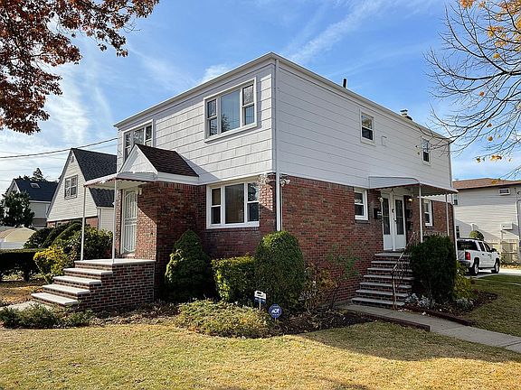 Large detached 2 car garage with new door and roof. House and garage roof only 5 years old. Large property and BIG house! 3 bedroom, dining room and large living room on first floor. 2 bedroom updated rental apartment with eat in kitchen and full dining room on second floor. Full finished basement with 2 bathrooms and separate entrance. Gated yard.