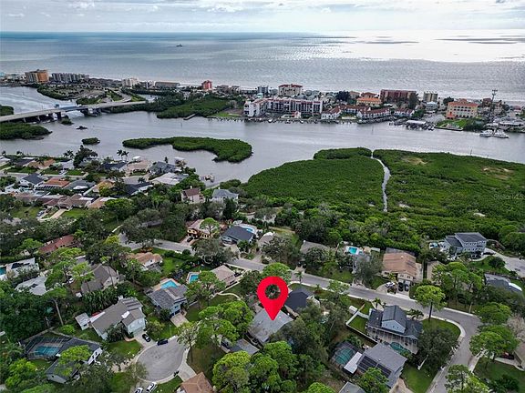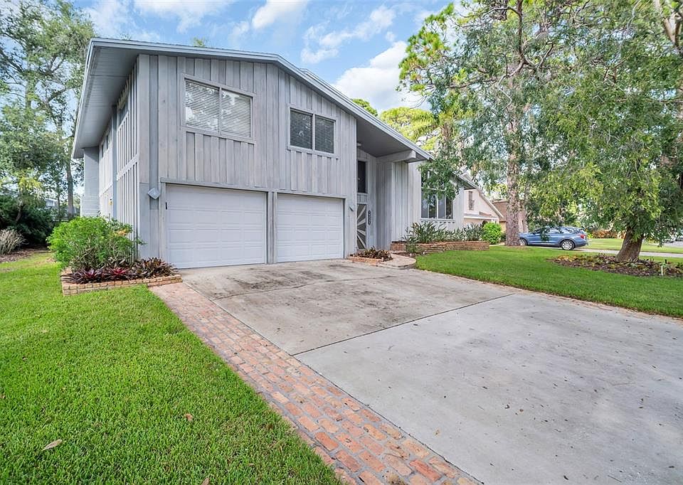 Owned and loved by a single family for over 50 years, this mid-century styled Seminole masterpiece is on the market for the first time since it was built. Three bedrooms, 3 full bathrooms, a primary closet to-die-for, this 2,780 square foot home is filled with elegance and personality. You enter the split-level home into a giant foyer then up to a living and dining room with soaring ceiling and massive windows overlooking magnificent mature trees and landscaping. The nicely appointed kitchen has Frigidaire Gallery Stainless appliances, a breakfast bar and tile countertops. The lower level has a huge family room complete with a stone fireplace, perfect for game days, movie nights and family entertainment in between. Step outside onto the pavered lanai with a huge in ground pool, protected by a two-story screened enclosure. Upstairs are three generous sized bedrooms, including a primary suite and second bathroom for easy family living. Need extra room for your regalia? The shoe-store sized primary closet awaits you and your inventory. Located on a cul-de-sac among mature landscaping, the home is in the highly desirable Whispering Pines Forest section of Seminole and is close to schools, shopping and beaches. ROOF 2018 / HVAC (2 units) 2023 / WATER HEATER 2018